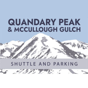 The Quandary Peak and McCullough Gulch shuttle will operate from June 17 – September 17, seven days a week from 5:00am to 5:00pm. Please note the McCullough Gulch shuttle runs 8:00am – 4:00pm only. All shuttles will pick up visitors at the Breckenridge South Gondola Parking Structure (80 North Park Avenue) and drop off at the Quandary Peak Trailhead parking lot. Visitors going to McCullough Gulch will then board a second shuttle to go to the McCullough Gulch Trailhead. Note, the McCullough Gulch shuttle service is included with the purchase of a parking reservation or shuttle payment (no additional ticket is needed).